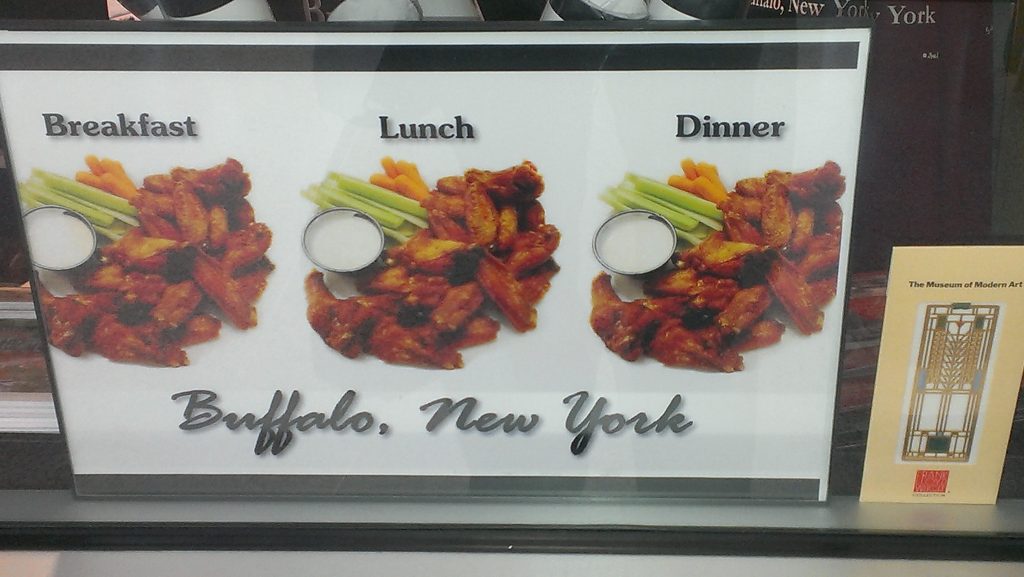 I’m a wings aficionado. It’s my favorite food by far. I once flew from New York City to Buffalo and back in one day, just to go to the Anchor Bar and have wings for lunch. Then I married a girl from Buffalo! Even before I did, I spent plenty of time there, so if you’re from Buffalo, I submit the following to establish my street cred: