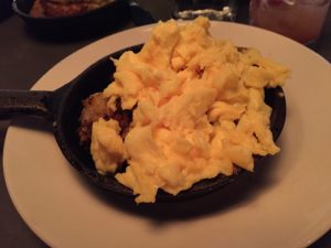 The price is $20 and for $10 more you get bottomless Bloody Marys or Mimosas. Start with a fresh fruit plate and monkey bread, then order away from a menu of these items: slider & fries, chicken biscuit, fish & chips, maple walnut brioche toast, silver dollar pancakes, velvet waffle, pastrami hash & egg, biscuit & gravy, eggs & potatoes, and three kinds of Benedicts. They’re served in small-bite portions that aren’t really that small, so choose wisely.