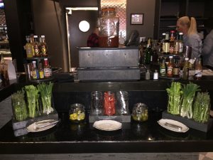 For $20 you’ll get premium vodka, but it’s not necessary. Get the $10 version and load your drink up with fixins from the make-your-own BM bar and you can’t tell the difference. It’s not the most lavish bar we’ve seen, but there’s bacon, peppers, celery, olives, and lots of spices. Good enough.